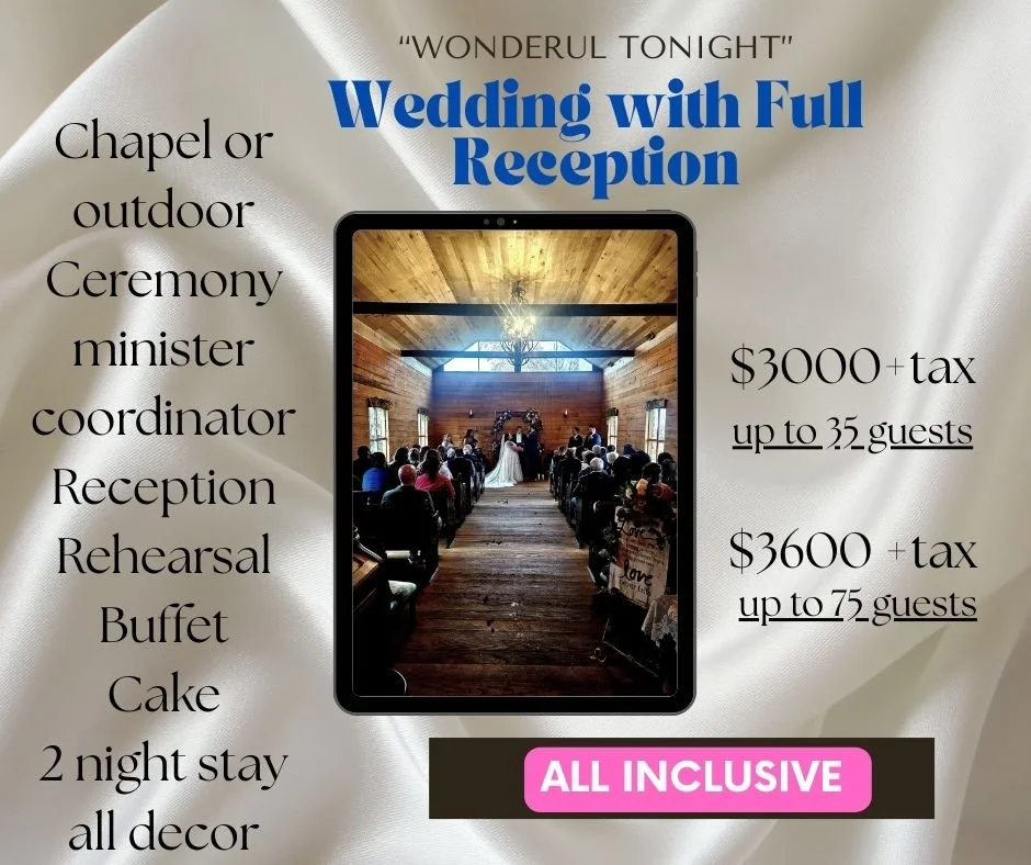 Wedding 5 to 20 guests $250 includes 1 hour bridal barn
